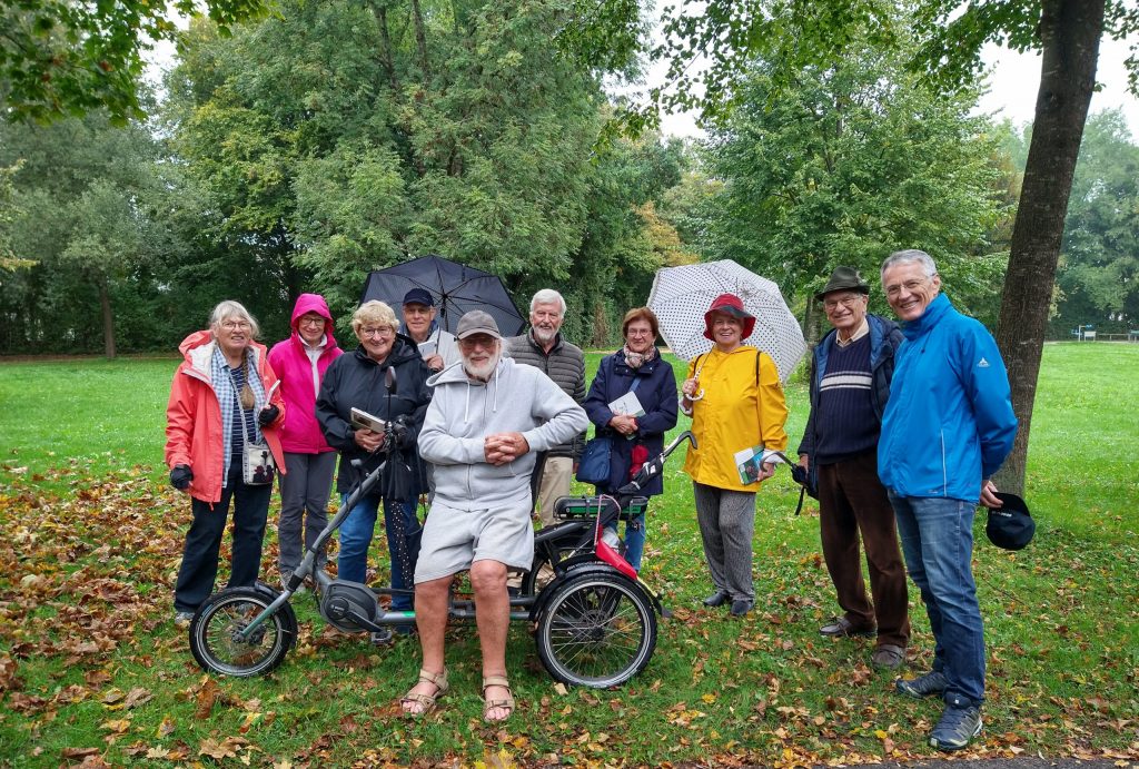 An der diesjährigen Radeltour nahmen 17 Mitglieder und Freunde teil. Sie führte zum Erbachweiher (zwischen Puchheim und München-Aubing). Von dort ging es zur „Kapelle der Holzknechte“ (zwischen München-Aubing und Germering), die im September 2020 offiziell eingeweiht wurde. Sie wurde komplett aus Weißtannen- und Zirbenholz errichtet und sticht sofort ins Auge. Die Kapelle bauten die „Aubinger Holzknechte“ aus Dankbarkeit. Mit der Kapelle wollen sie ein Vergelt’s Gott in den Himmel schicken, weil wir alle in einer Zeit des Wohlstands leben, in Frieden und Sicherheit.